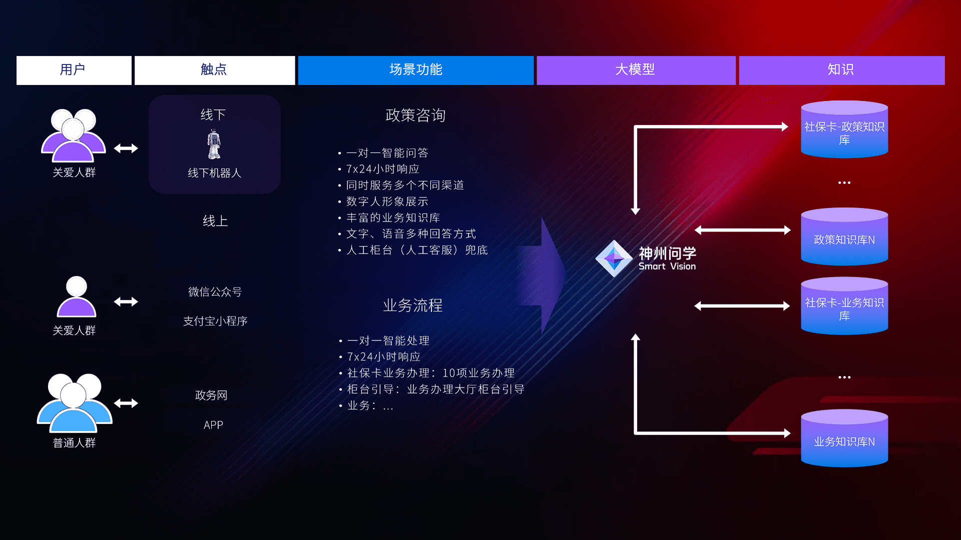 • 线上线下全覆盖:线上提供微信公众号、、、支付宝小程序、、政务网、、、app多种渠道,,,与线下机器人形成完整服务体系。。。